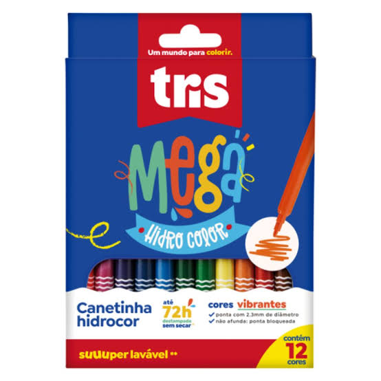 Canetinha hidrocor com 12 cores ultra intensas! Fica até 72h destampada sem secar; possui ponta bloqueada e tinta super lavável.