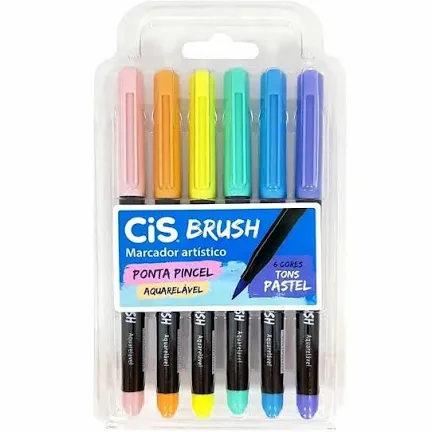CANETA PINCEL BRUSH AQUARELAVEL 6 CORES PASTEL CIS